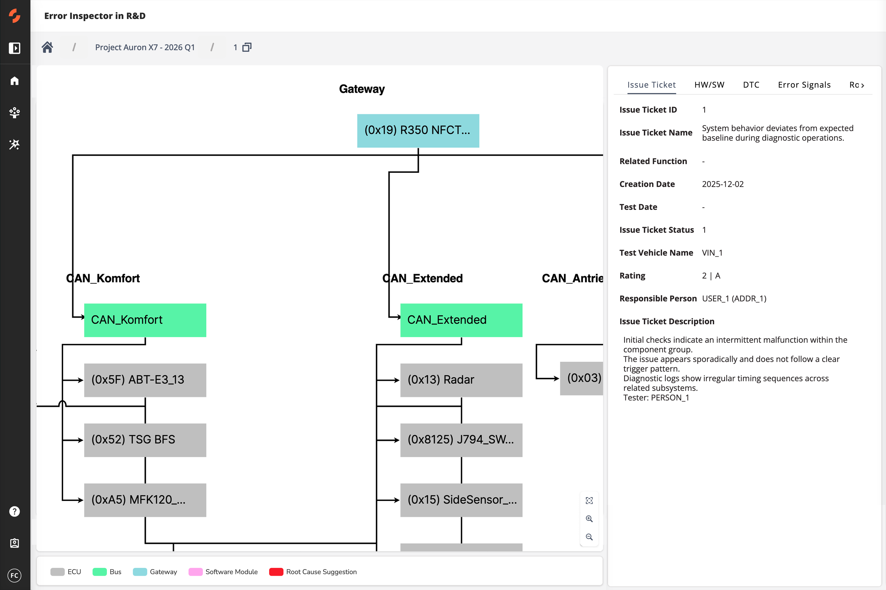 Error Inspector empowers your teams to identify and solve electrical, electronic, and software issues earlier in the lifecycle, reducing troubleshooting time and increasing system reliability. By linking errors to dependencies, it accelerates resolution and improves product quality, preventing costly delays in R&D, Production, and Aftermarket.
